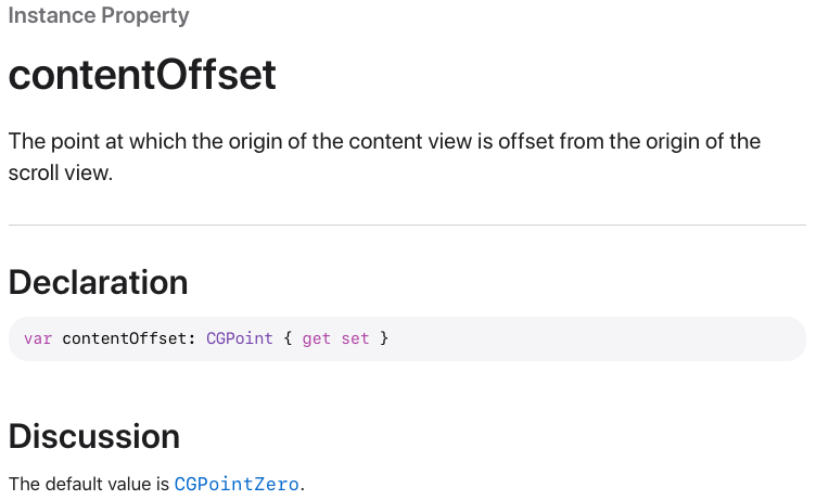 contentOffset은 '스크롤뷰의 오리진에서 오프셋된 콘텐츠뷰의 오리진 위치'라고 했습니다.