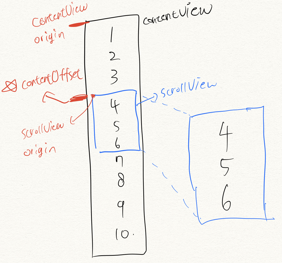 저는 처음에 이해를 잘 못해서... 대체 어떻게 contentOffset을 나타내는 건지 곰곰이 생각해보고 그림 그려가면서 이해해보니 이해가 되더라고요.